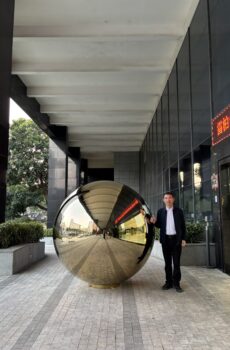 2-meter diameter stainless steel sphere sculpture