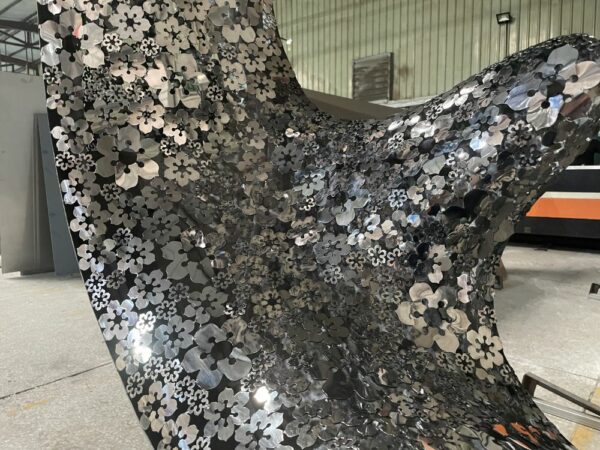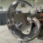 This abstract stainless steel sculpture is like a quiet piece of music, playing gently in the tranquility of the night, leading the viewer into a world full of wonder and imagination, making people immersed in it and forget to leave.