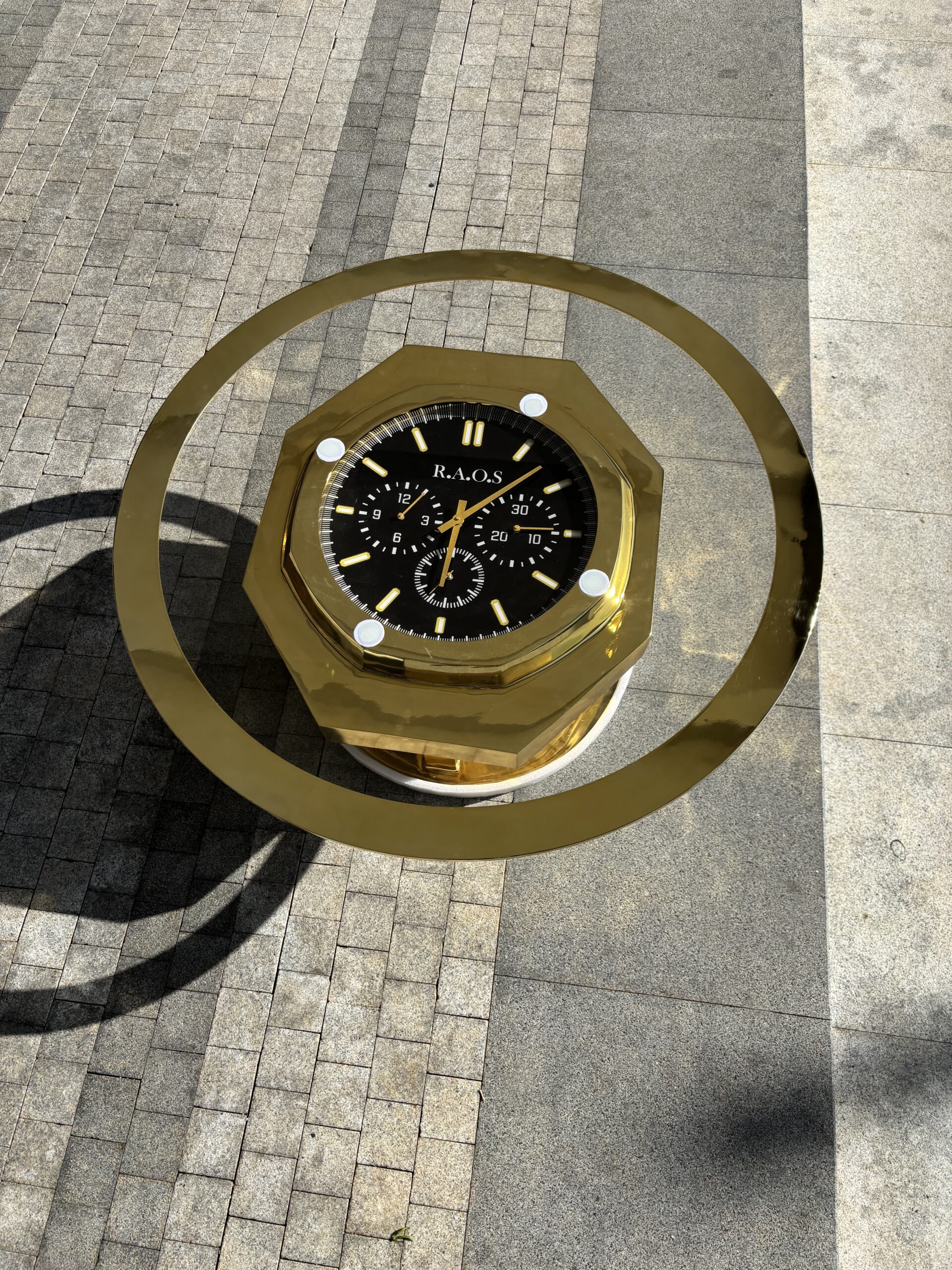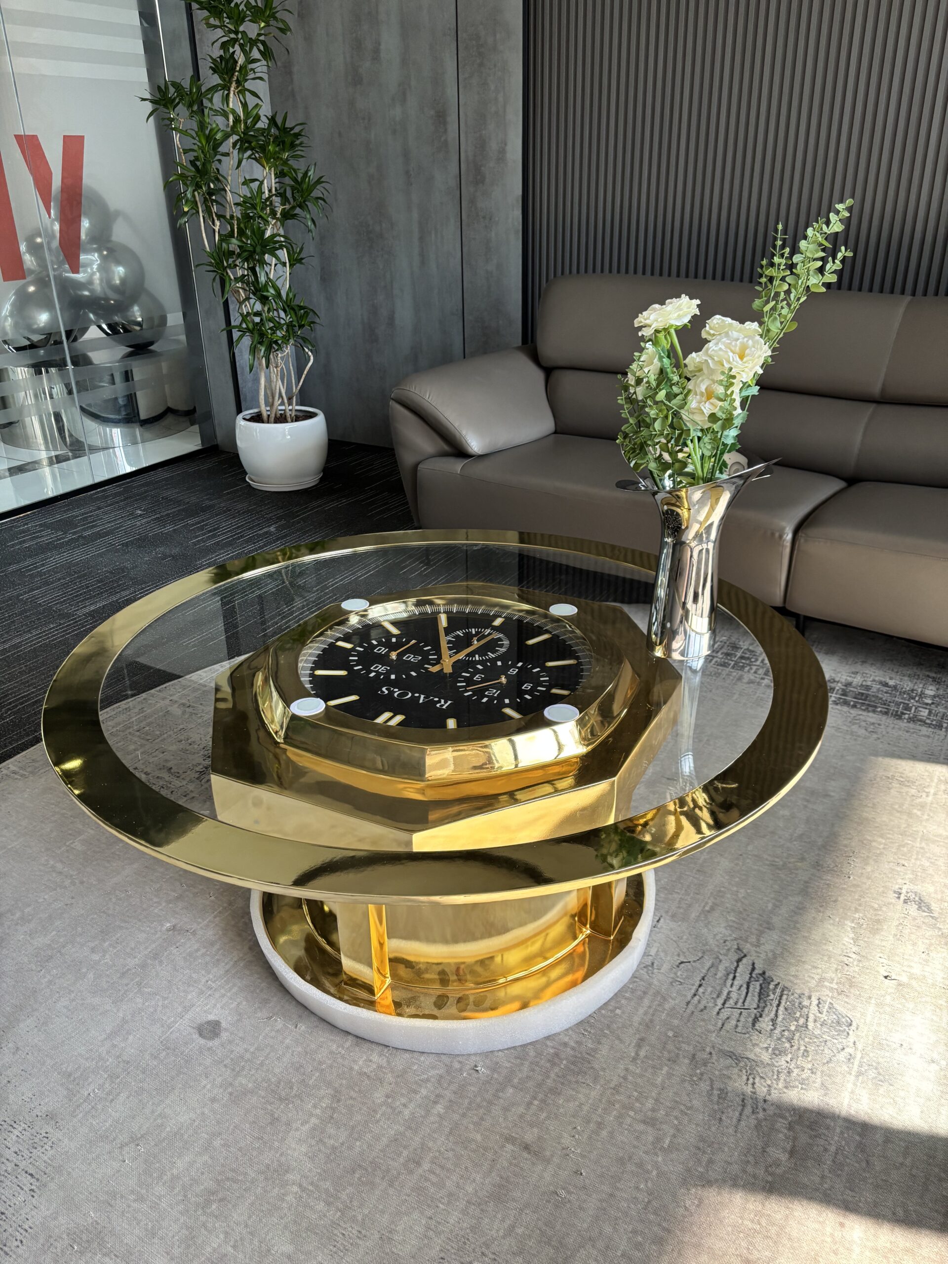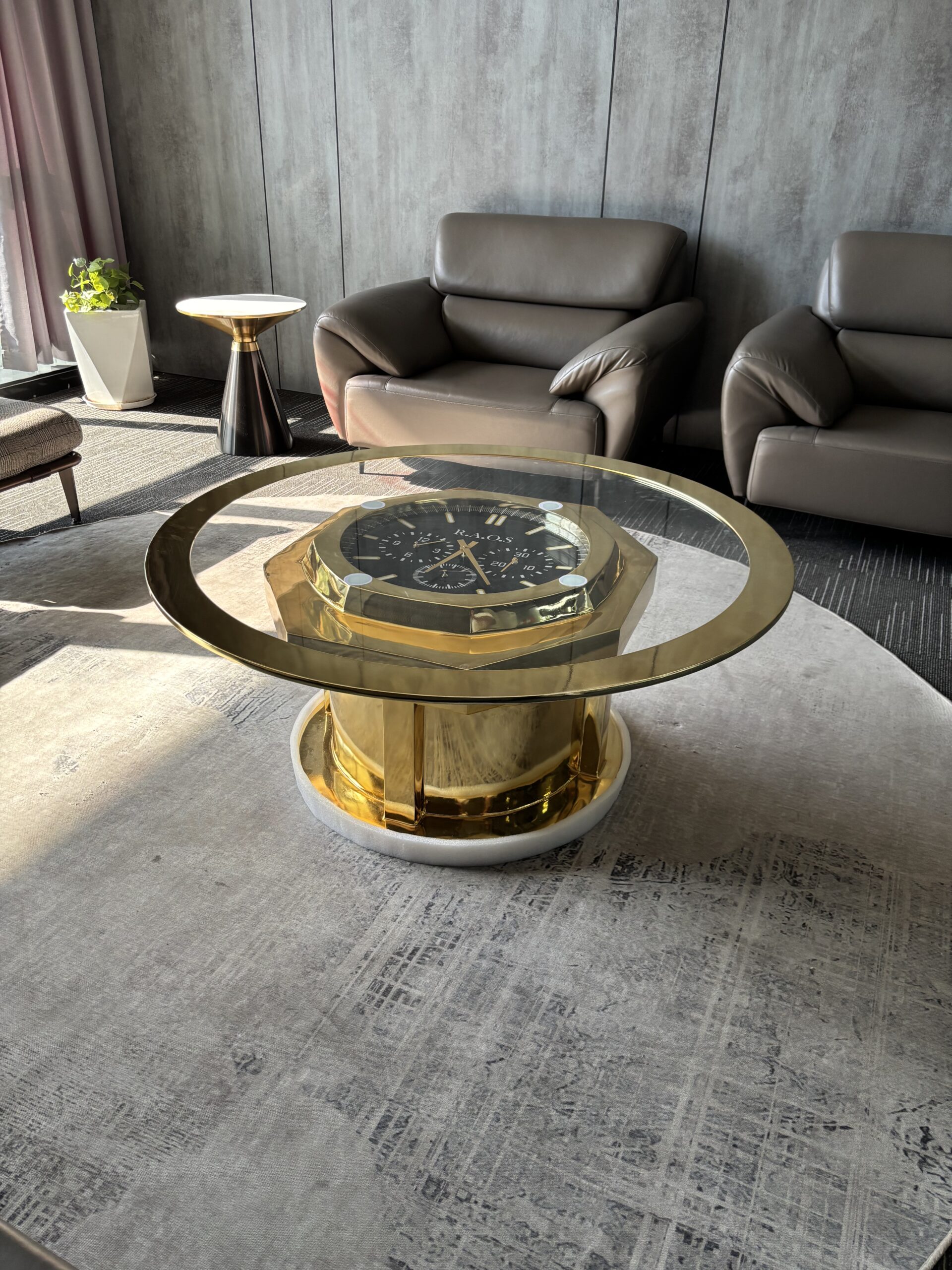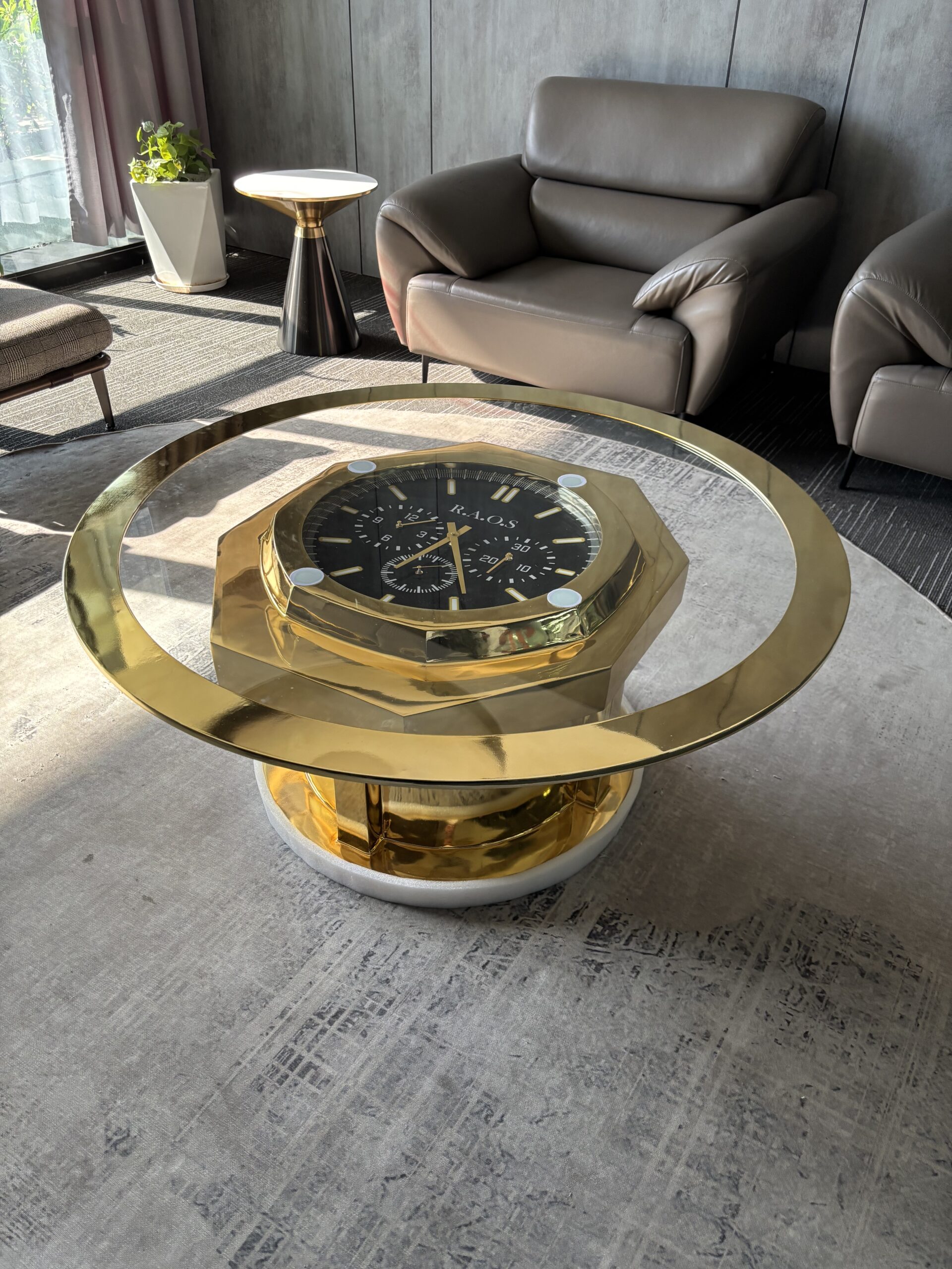 This modern gold clock coffee table is more than just a place to set your coffee — it’s a statement piece that brings function, elegance, and character into your living space.
