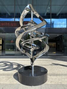 This stunning stainless-steel sculpture is a true statement piece — bold, fluid, and full of energy. Crafted from premium 304 stainless steel with a mirror-polished finish, it reflects its surroundings beautifully, creating a mesmerizing play of light and form. Its twisting, spiral design suggests movement and balance, symbolizing the harmony between innovation and nature.
