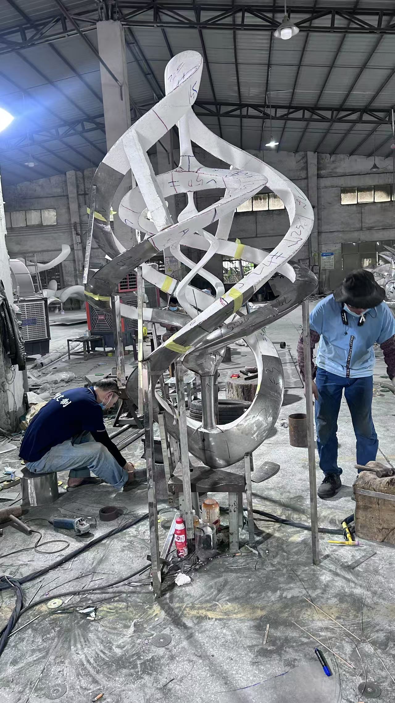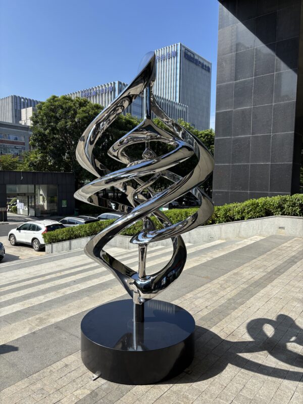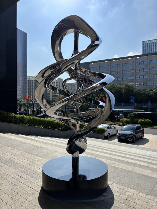 This stunning stainless-steel sculpture is a true statement piece — bold, fluid, and full of energy. Crafted from premium 304 stainless steel with a mirror-polished finish, it reflects its surroundings beautifully, creating a mesmerizing play of light and form. Its twisting, spiral design suggests movement and balance, symbolizing the harmony between innovation and nature.