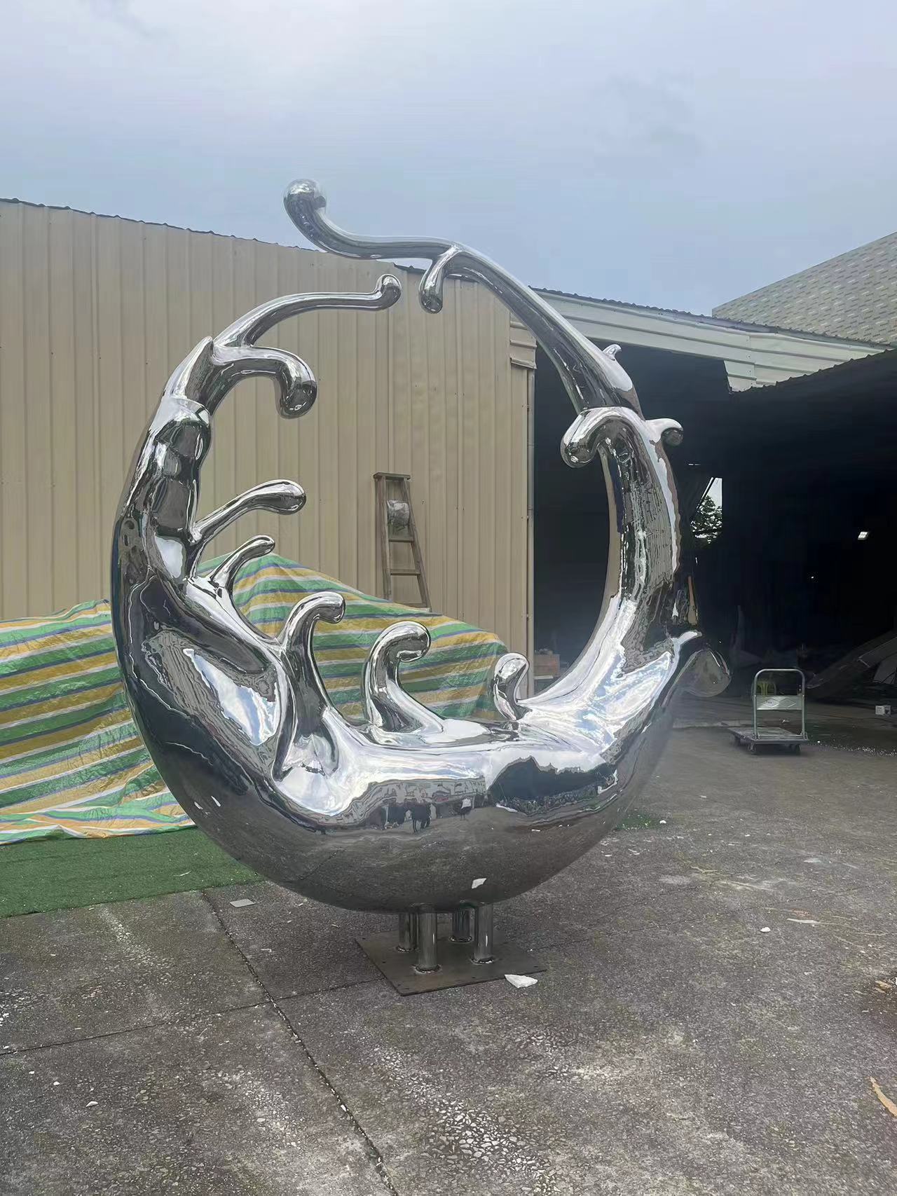 This is a modern art sculpture made of high quality stainless steel. Its design is inspired by the wave form of nature, symbolising dynamism and vitality. The sculpture presents a unique streamlined structure, and the smooth surface is highly polished to reflect the light and shadow changes of the surrounding environment, creating a fashionable and avant-garde visual effect. Suitable for outdoor public space, commercial plaza, garden landscape and other places, it not only can enhance the artistic atmosphere of the environment, but also has the characteristics of strong weather resistance and easy maintenance. As a unique work of art, it not only demonstrates the exquisite craftsmanship, but also expresses the designer’s deep understanding and pursuit of natural beauty and modern aesthetics. This sculpture will be the highlight of any place, attracting attention and adding artistic taste.