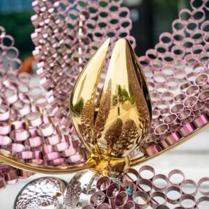 The existence of this sculpture not only allows people to stop and feel the beauty of nature in the busy city, but also adds a sense of artistic agility and vitality to the city. Like a blooming flower, it brings a touch of tranquility to the hustle and bustle of the city and injects a touch of romance into people’s lives. This is a sculpture that shows the harmonious coexistence of art and nature. It is also a unique landscape in the city, allowing people to feel the power of art and the dialogue with nature.