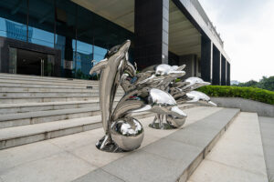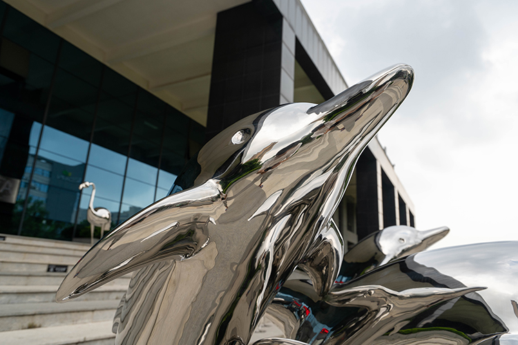 The stainless steel dolphin sculpture is an intoxicating work of art that combines the mysterious beauty of the sea with the innovation of modern art, bringing a unique charm to your space. The following is a detailed introduction to our stainless steel dolphin sculptures: