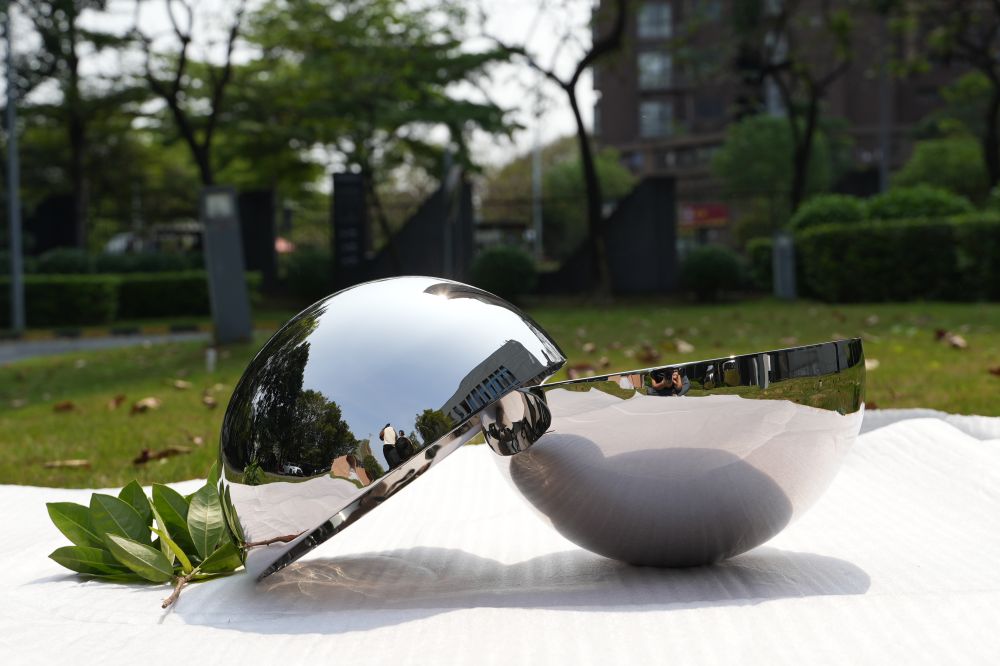 Stainless Steel High-Gloss Hemisphere In this verdant meadow, a mysterious stainless steel high-gloss hemisphere stands in it, like a messenger from the future, exuding a fascinating light.With a diameter of 300 millimetres, it seems to be a perfect blend between the earth and the sky, adding a touch of unique flavour to the land.This stainless steel hemisphere is not only a decorative piece, but also a source of inspiration.It refracts the rays of the sun and focuses the light on the grass, like a bright light illuminating the road ahead.Whether it is day or night, it tells the story of light and shadow, making people feel awe.The bright surface reflects the surrounding scene, as if the whole world is packed into this small hemisphere.The viewer can swim in its world of light and shadow and feel the wonder and beauty of nature.This stainless steel high gloss hemisphere is not only a work of art, but also a celebration of life.It symbolises mankind’s pursuit of a better future, an eternal belief in light and hope.Standing on the grass, looking up at this radiant hemisphere, it’s as if we can feel an infinite power that inspires us to go forward and meet the challenges of the future.In this meadow, this stainless steel high-gloss hemisphere is like a bright star, shining on everyone who comes to watch, bringing them endless beauty and moving.It is a perfect combination of art and technology, a crystallisation of human wisdom and a symbol of the future world.