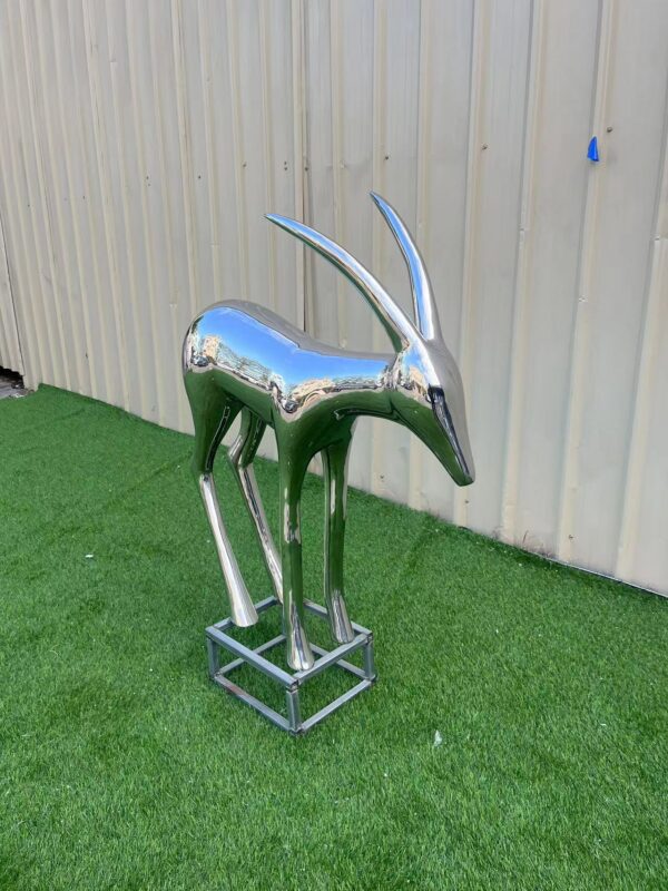 Elegance frozen in an instant: stainless steel mirror antelope sculpture