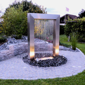 This stainless steel waterfall sculpture is a masterpiece that combines modern art with natural elements. Its box design is simple and atmospheric, and the stainless steel material is smooth and bright, presenting a high-end texture and excellent durability. The water in the sculpture falls evenly through the well-designed holes, forming a spectacular water curtain that is as stirring as a natural waterfall.