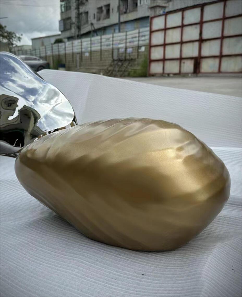 This group of stone sculptures, with its unique modern art style and superior craftsmanship, perfectly blends natural elements with contemporary design concepts. Each sculpture is made of high-quality metal materials. The gold and silver metal surfaces are precisely polished and honed to present a mirror-like luster, just like rocks in nature, giving the space a unique texture and visual impact.